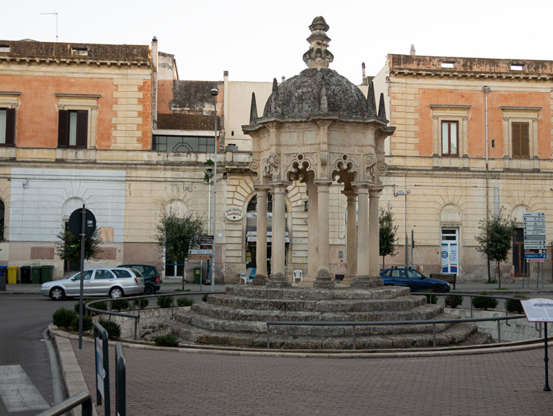 A very recent construction, the Bull Fountain was created in 1930 by Michele Caballo, a sculptor from Nardò. The fountain represents and interprets the coat of arms of the town of Nardò: a bull digging into the ground meets water, a source of wealth for the local economy.