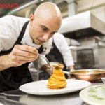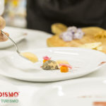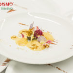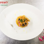La declinazione è un’Amatriciana in cinque e differenti consistenze: gelatina, spuma, aria, cremoso e mousse di Amatrice con diversi crispy di accompagnamento.