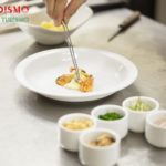 Lo chef e la sua brigata ha proposto il vero tocco innovativo, aggiungendo quel tocco magico nella guarnizione: granella di guanciale croccante, olive nere liofilizzate e chips di prezzemolo.