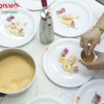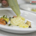 La miscela di crema di patata e patate tagliate in piccoli pezzi ha composto la texture interna in due consistenze. Una cremina di amatriciana aromatizzata con erba cipollina e lime, come accompagnamento, ha deliziato il palato dei nostri ospiti.