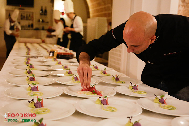 Con emozione e grande gioia, il nostro speciale ringraziamento va (e credeteci, questo non è assolutamente un’ordine di importanza perché, le persone qui menzionate, meritano un posto speciale nel nostro cuore) al Prof. Francesco Lenoci, assiduo promotore della nostra terra e di tutto ciò che è meritevole e degno di menzione, Gaetano Castellini, l’artefice di Expo a Milano e primo innamorato e corteggiatore del Salento, Tiziana Protopapa (“Leccenews24”) e Daniela Pastore (“La Gazzetta del Mezzogiorno”) che, con le loro penne, hanno scritto bellissime lettere d’amore per Foodismo e per il Salento e, last but not least, Domenico Zezza, violinista di fama internazionale che, col suo Stradivari, ha accompagnato dolcemente il racconto sul menu e sul vino tra una portata e l’altra.